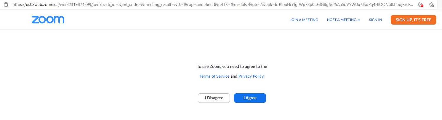 Bild 6: Då kommer du till denna sida där du slutligen klickar på ”I Agree” för att komma till mötet .
